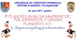 Udruženje za turističku promociju opštine Plandište „Planadijum“ 28. aprila organizuje deseti plandištanski Sajam privrede, poljoprivrede i turizma „Plandište 017“. Istog dana, 28. aprila u Plandištu, biće održan i treći Sajam socijalnog preduzetništva. Dodatne informacije dostupne su na brojevima telefona: 013 861 975 i 063 713 42 91
