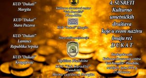 Četvrti susreti KUD-ova „Dukati“, početak nedelja 9 juna 2019 godine od 17:00h. Domaćin susreta: KUD „Dukati“ Margita Učestvuju: 1. KUD „Dukati“ Margita 2. KUD „Dukat“ Stara Pazova 3. KUD „Dukati“ Kragujevac 4. KUD „Dukati“ Laminci (Republika Srpska) Ulaz SLOBODAN !!! DOBRO DOŠLI !!!