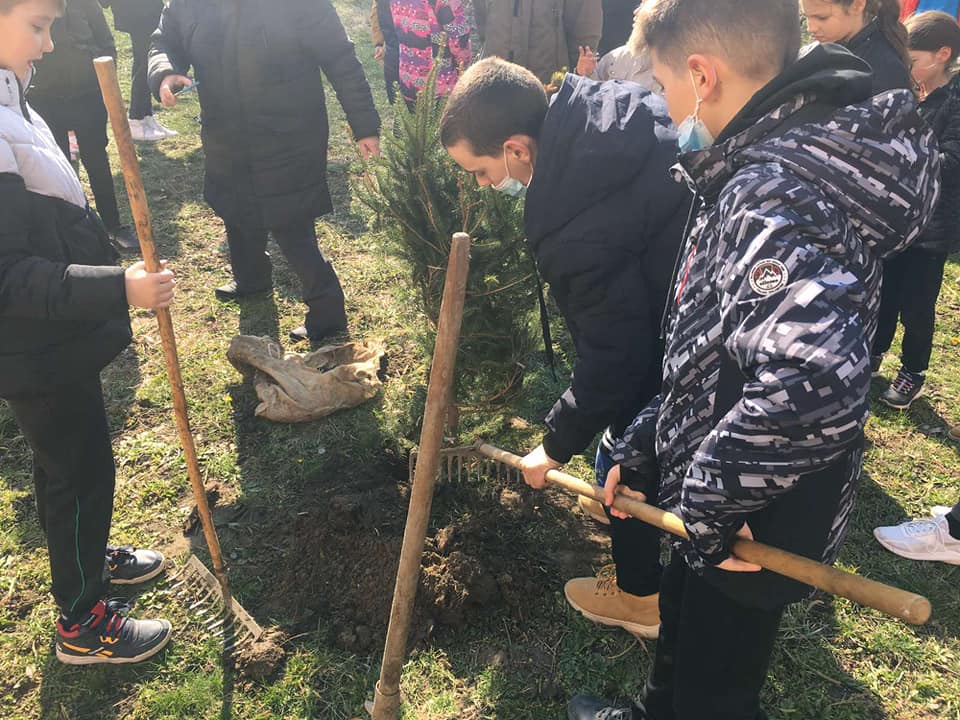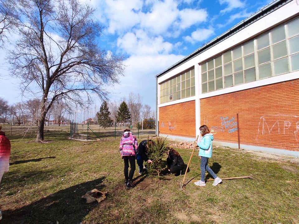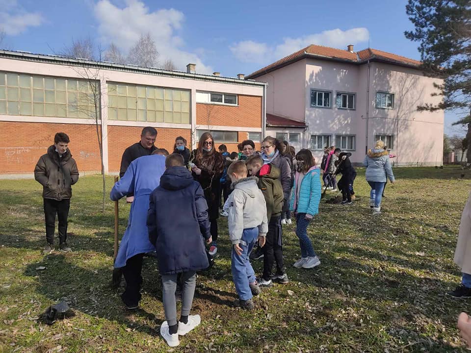 Učenici prvog i drugog ciklusa i njihovi nastavnici, učestvovali su u ozelenjavanju školskog dvorišta, sadnjom stabala listopadnog i četinarskog drveća, (ukrasnih plavih jela, kovrdžavih vrba, hibiskusa, divljeg kestena-roze, albicija, kraljevskog ruja, javora kinga itd.) i time doprineli uređenju školskog ambijenta.