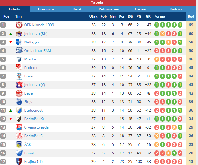 Sloga je trenutno na 10 mestu sa 39 bodova