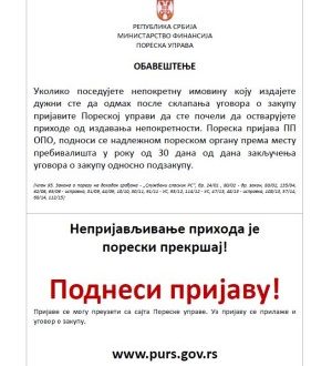 Poreska uprava Republike Srbije poziva građane koji ostvaruju prihod od izdavanja nepokretnosti da, u skladu sa svojom građanskom dužnošću, podnesu poresku prijavu i da plate porez.