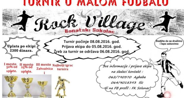 Turnir u malom fudbalu u Banatskom Sokolcu 27.07.2016 Turnir u malom fudbalu u Banatskom Sokolcu Prijave za turnir do 05 08 2016 godine. Svi ste pozvani ! 2016-07-27 admin tweet